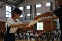 離任式が実施され、3名の教職員が離任されました。美川中を支えてくださった方々とお別れを惜しむ生徒が、楽しい一時を過ごしました。