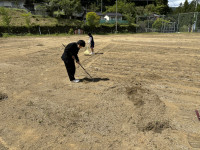 春休みのくすのき農園は、3学期に植えたジャガイモの種いもから芽が出て、大きくなってきています。ほうれん草、サニーレタスも大きく育ってきています。