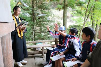岩屋寺の住職さんに弘法大師にまつわる話やお遍路さんにまつわる話を聞いて学習しました。